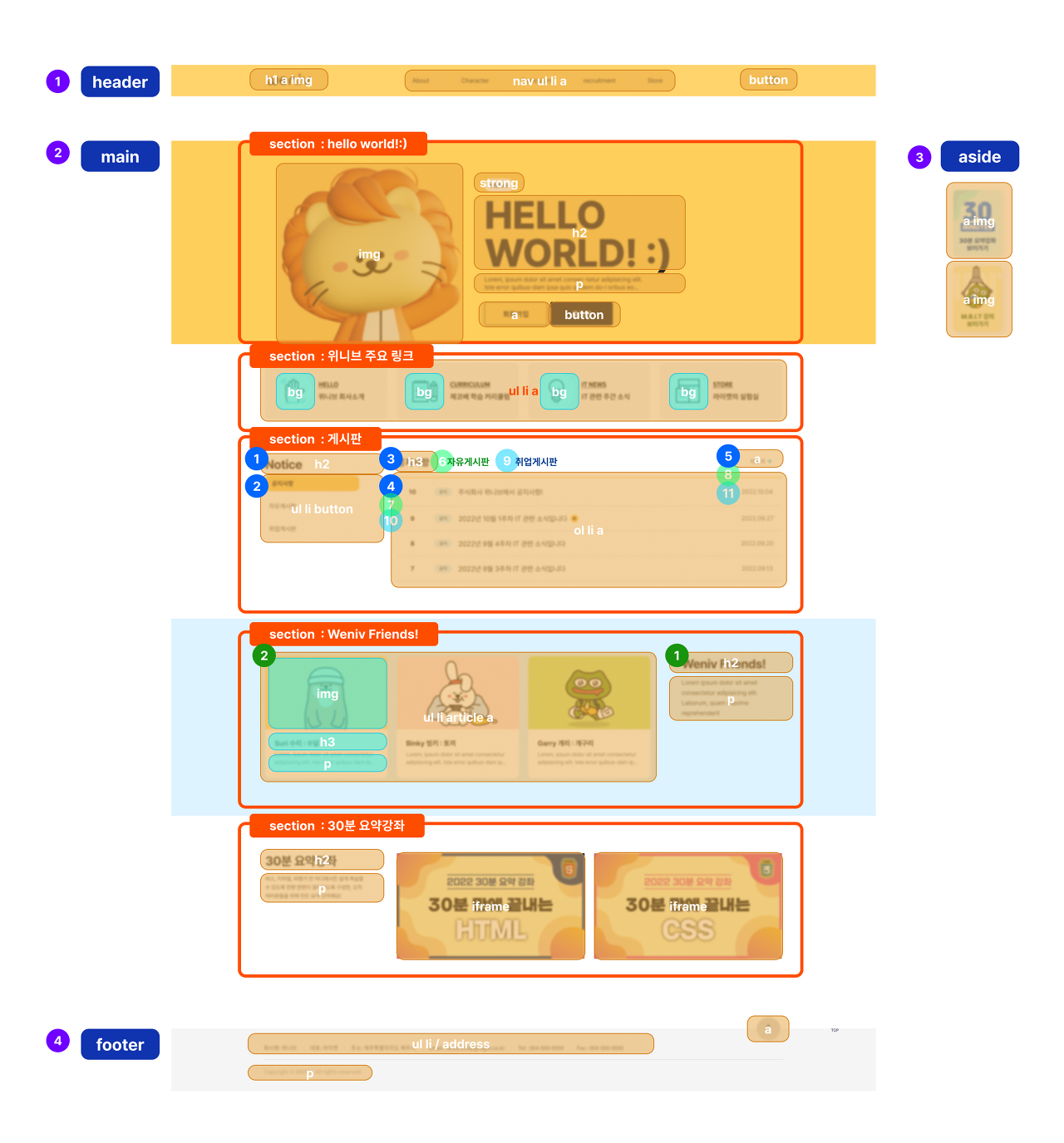 구조 분석 결과 3-2. HTML/CSS 만들기 (30분)