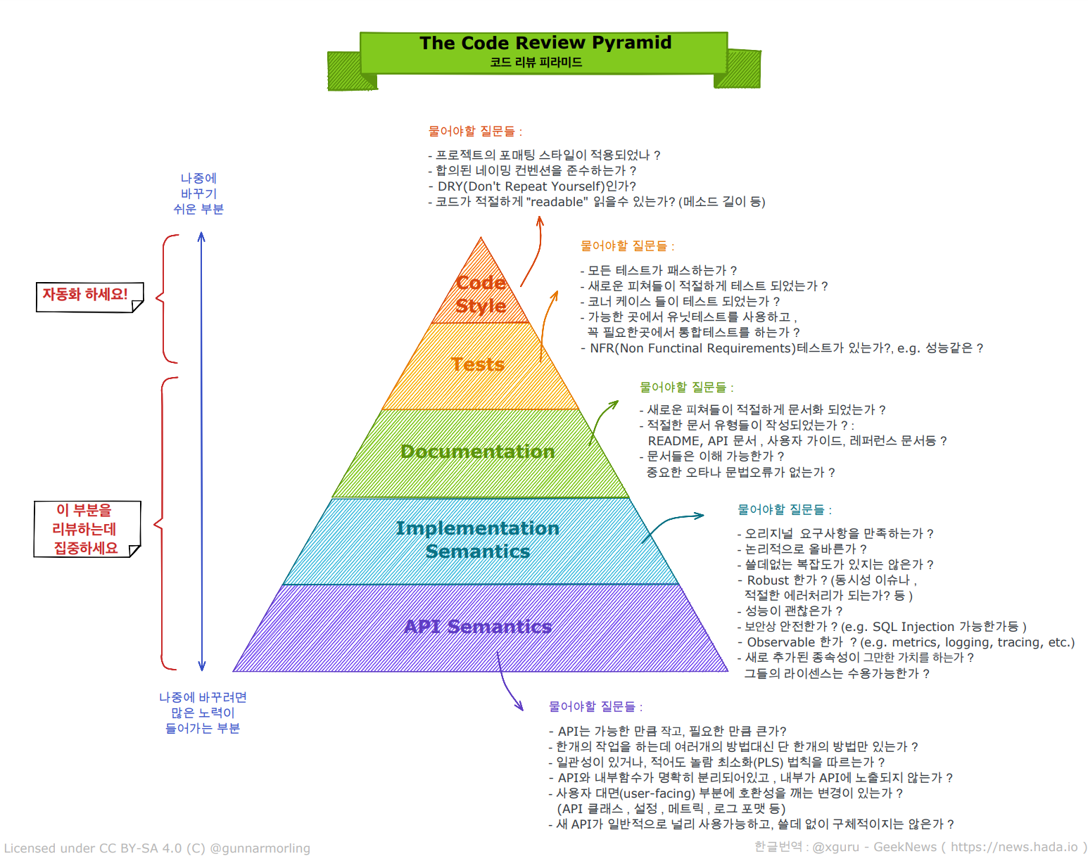 - 코드 리뷰 피라미드 라이센스는 GeekNews 에서 확인 가능하며 xguru 님께서 번역함
