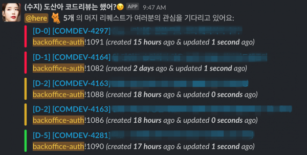 - MR 을 생성했는데 리뷰어는 묵묵부답이고 직접 요청하자니 업무를 방해하는 건 아닌지 걱정하는 상황