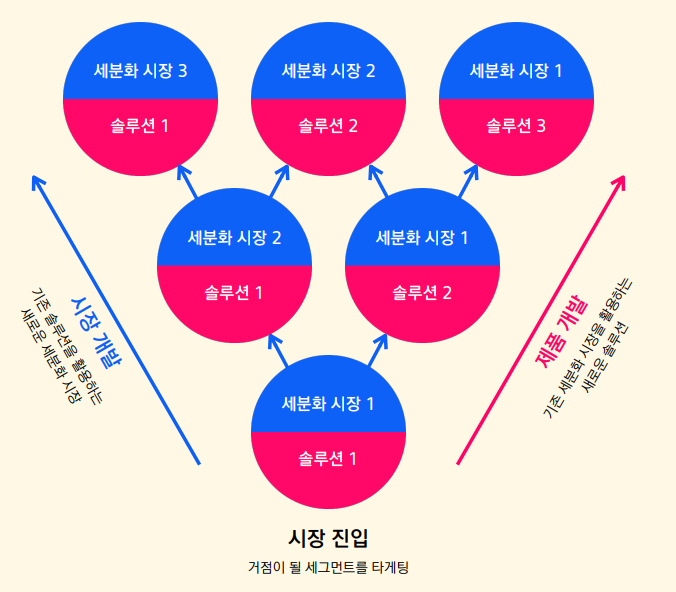 - 볼링핀 전략 (Bowling Pin Strategy) : 하나의 세분화 시장을 집중 공략한 이후에 인접한 세분화 시장의 새로운 고객 층을 차례로 확보해 나가는 전략