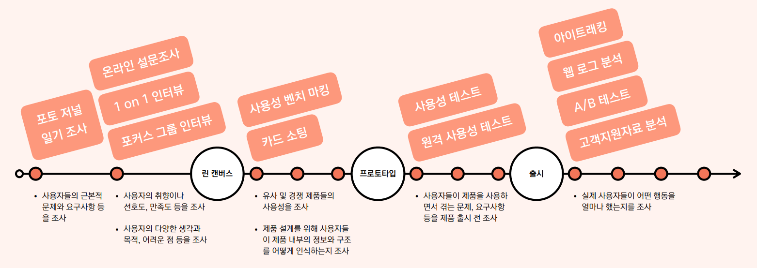 - 프로젝트 기획 단계에서 사용자의 다양한 생각과 목적, 어려운 점 등을 조사