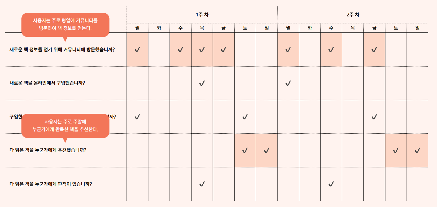 - 알고 싶은 사용자의 행동 패턴을 작성하고 그 항목에 대해 사용자가 직접 기록