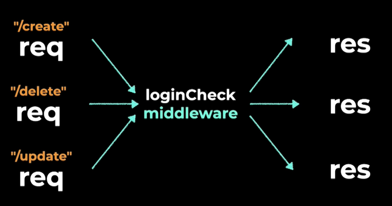 개별적으로 체크를 하지 않고 한대 묶어 미들웨어가 처리한다 - 미들웨어가 필요한 이유는 각각의 요청과 응답 사이 같은 작업을 따로 수행하지 않고 공동적인 작업을 수행한다.
