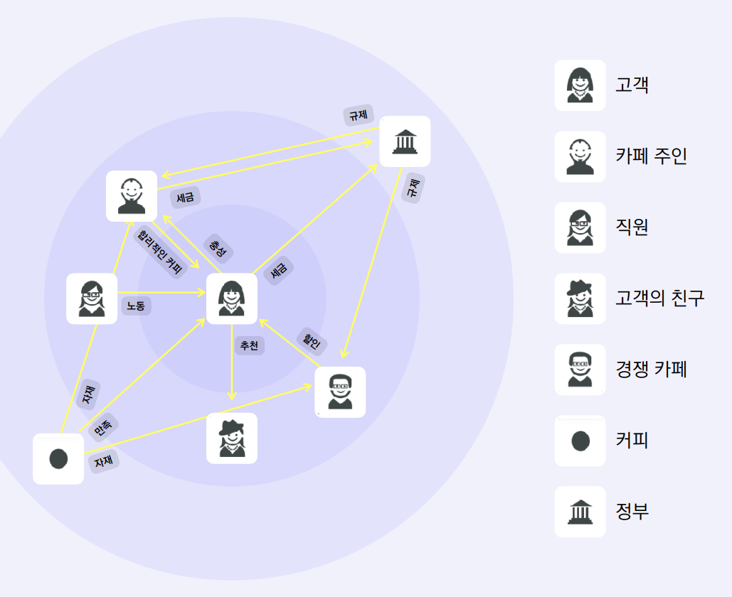 - 제품의 이해관계자를 정의하고, 고려해야 할 역학 관계를 총체적으로 파악하기 위해 사용