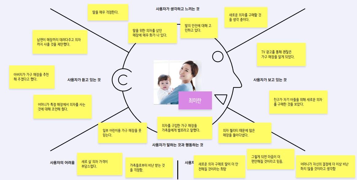 - 퍼소나가 여러 명이라면 각자의 공감 지도 작성 필요