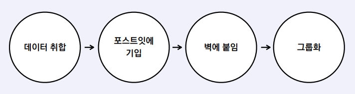 - 그룹에 이름을 붙임 : 그룹화가 끝나면 카드를 주고 각 그룹에 대한 이름을 작성하도록 함