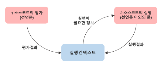 - 모든 소스코드는 JS엔진을 통해 평가와 실행으로 나누어 처리된다.