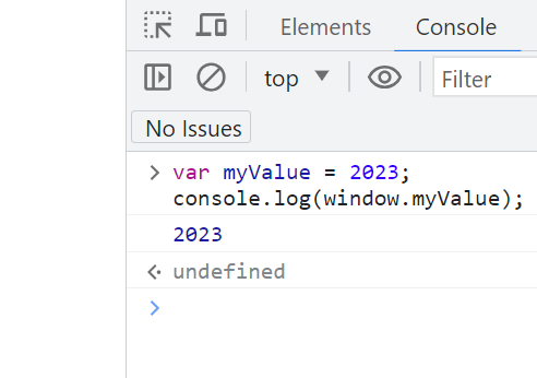- ES6의 let, const 키워드로 선언한 전역 변수는 전역 객체의 프로퍼티가 되지 않고 개념적인 블록, 즉 전역 환경 레코드의 선언적 환경 레코드 내에 존재하게 된다. 위 예제의 전역 변수 y는 let, const 키워드로 선언한 변수이므로 전역 객체의 프로퍼티가 되지 않기 때문에 window.y 와 같이 전역 객체의 프로퍼티로서 참조할 수 없다.