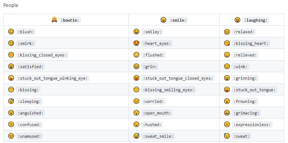 - 기본적인 이모지는 여기 링크에서 보고 선택해서 README에 추가하면 되겠다. (ex. 😊 === :blush:)