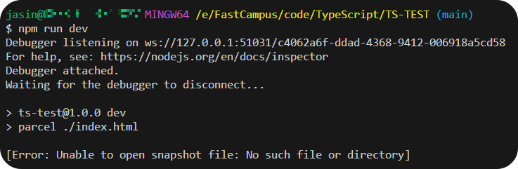 "scripts": { "dev": "parcel ./index.html", "build": "parcel build ./index.html" },그리고 Error 내용은 아래와 같다.