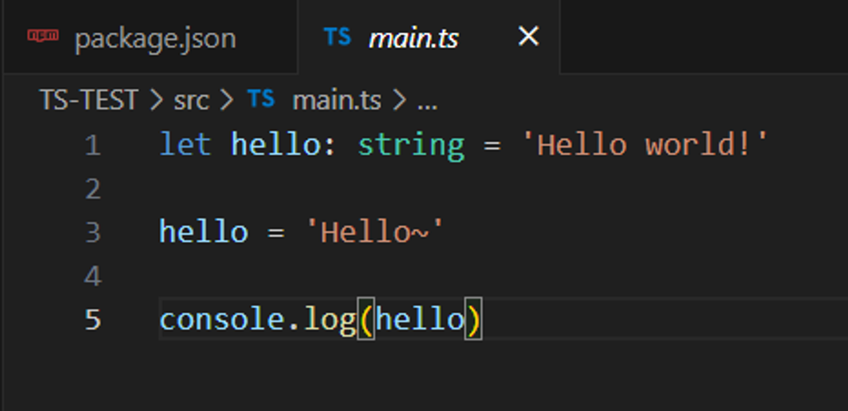 { "name": "ts-test", "version": "1.0.0", "description": "", "scripts": { "dev": "parcel ./index.html", "build": "parcel build ./index.html" }, "keywords": [], "author": "", "license": "ISC", "dependencies": { "parcel": "^2.10.3", "typescript": "^5.3.2" } }- TypeScript 파일 생성 및 연결