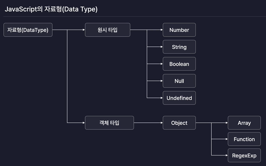- Undefined라는 단 하나의 값만 포함하는 특수한 타입이다. undefined라는 값은 우리가 변수를 선언하고, 어떠한 값도 할당하지 않았을 때 자동으로 할당되는 값이다.