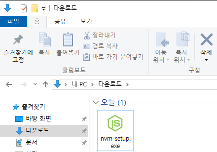 나는 윈도우 운영체제 설치파일인 exe 확장자로 끝나는 파일(nvm-setup.exe)을 다운 받아서 설치했다.