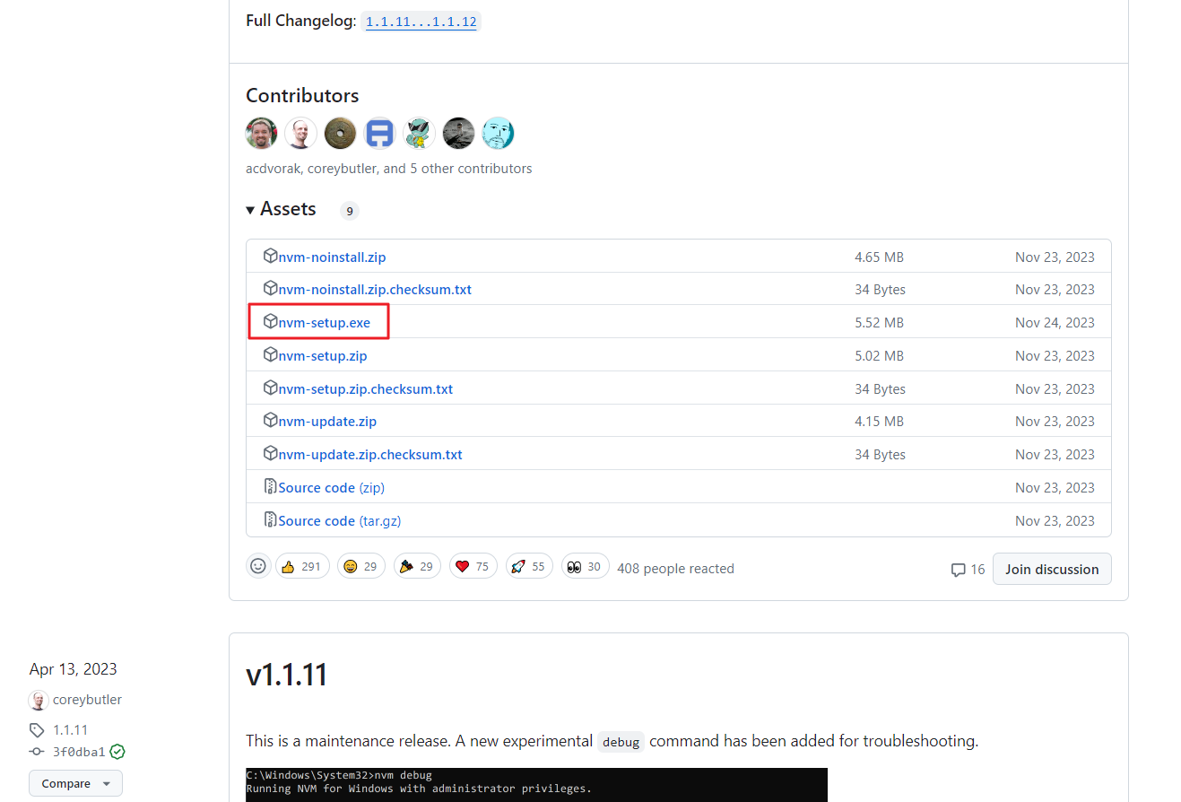 nvm-windows 설치파일이 있는 GitHub 저장소를 이용했다.