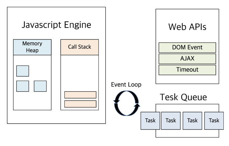 이벤트 루프는 태스크가 들어오길 기다렸다가 태스크가 들어오면 이를 순차적으로 처리하고, 처리할 태스크가 없는 경우엔 새로운 태스크가 추가될 때까지 기다리며, 끊임없이 돌아가는 JavaScript 엔진 내 루프입니다.