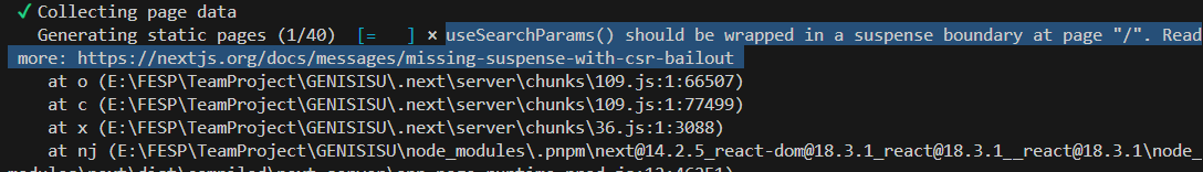 build Error: 정적 페이지를 생성하면서 useSearchParams를 사용한 컴포넌트는 suspense로 감싸줘야 한다. Problem