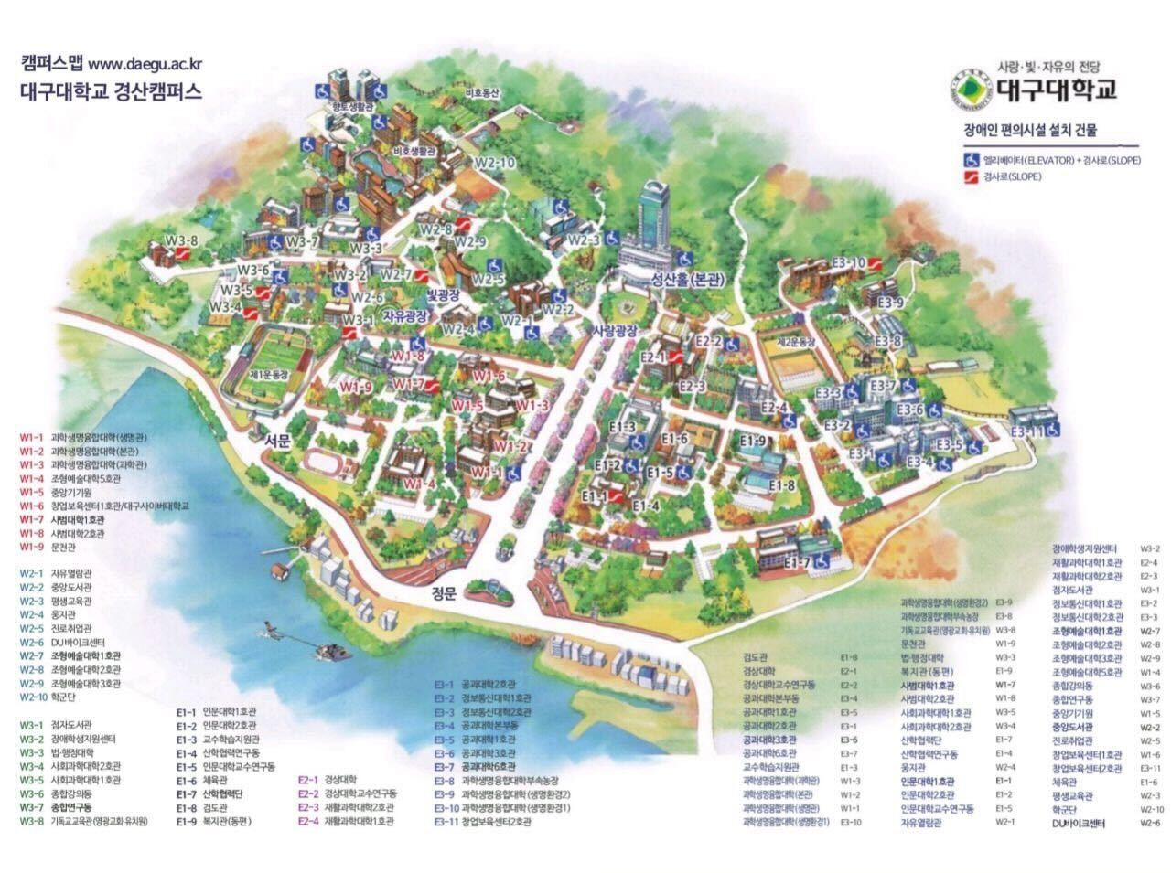 대구대 올라프와 대구대 교내 지도