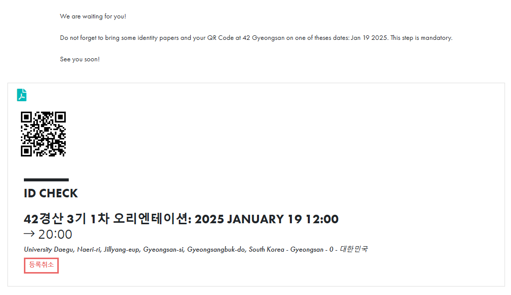 온라인 체크인 미팅의 경우 42경산 회원가입 시에 사용한 이메일 주소로 D-1에 참여 링크가 전달돼요.