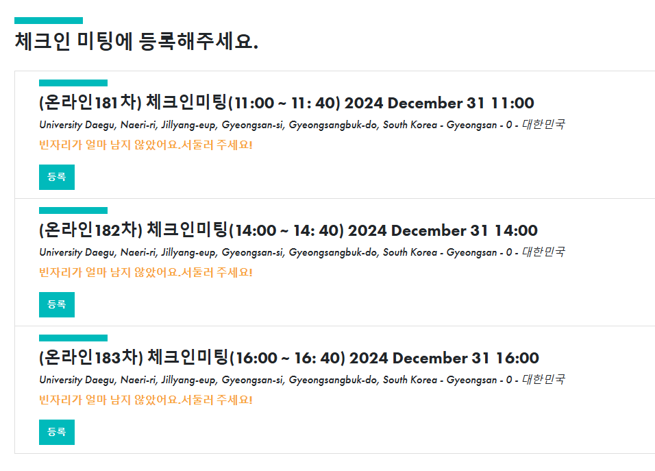 체크인 미팅에 우려가 있다면 선착순으로 모집된다는 점이죠.
