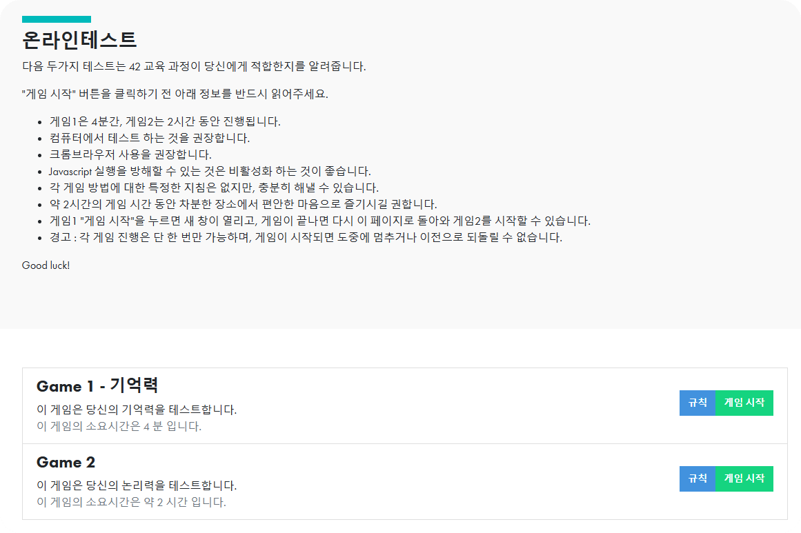 42 교육 과정이 적합한지 알려준다고 하지만 그냥 단순한 2가지 게임이랍니다.