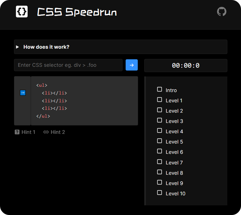 CSS Speedrun Website - 사이트2 CSS Diner