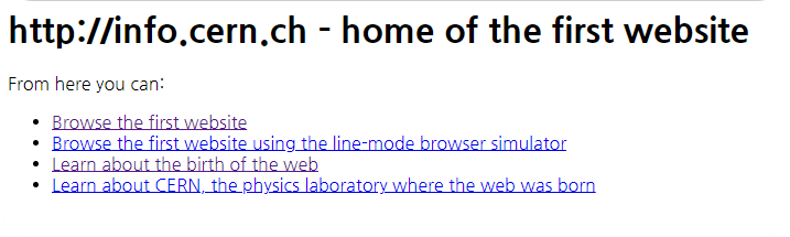 Screenshot of the recreated page of the first website (Image: CERN) - <table> 은 데이터의 본 목적과 다르게 배치를 위해 사용됨