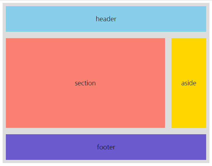 (HTML5 나왔지만, 구번전의 Explorer 대응을 위해 div 로 작성됨(Not Symentic))- 시맨틱한 마크업 (Flex, Grid) 을 이용한 레이아웃 구성